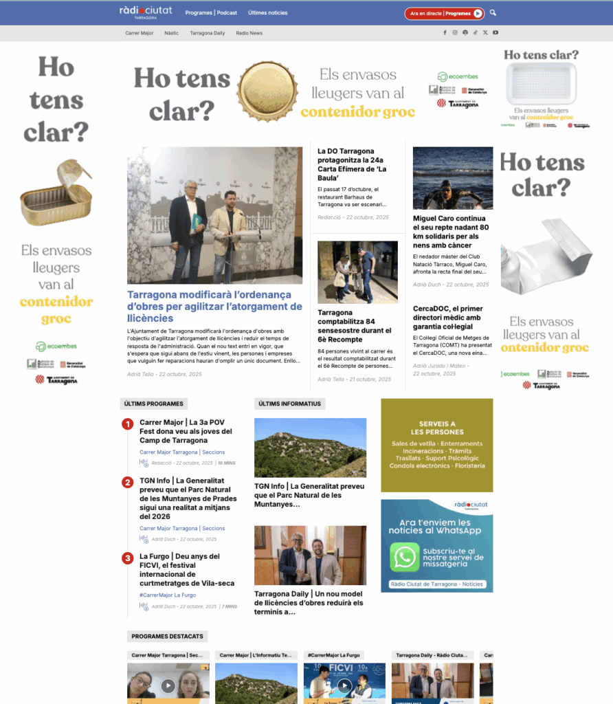 Desde el pasado 20 de octubre, en Radio Ciutat de Tarragona estrenamos una nueva versión de nuestra web, fruto de un trabajo conjunto que lidero junto a Sebas Fernández, responsable de diseño gráfico, y David López, programador.Nuestro objetivo ha sido claro: mejorar la experiencia de usuario y reforzar el papel del audio como eje central […]